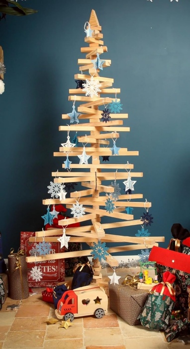 J’ai le sapin en bois de Nature et Découvertes. Je l’adore ! Il est grand original, et fait toujours son effet quand je reçois du monde. Il est aussi assez pratique car ne prend pas trop de place, rangé non plus. Et on peut quand même mettre quelques déco dessus style boules, suspensions… bref je valide !