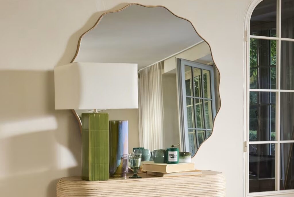 Autre tendance en décoration d’intérieur, il y a aussi ces miroirs à la forme originale : forme d’œuf, forme organique (haricot, goutte d’eau)… Mais aussi la grande tendance depuis quelques années : les miroirs ondulés, avec un cadre généralement en bois.
