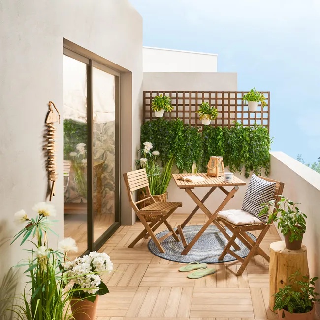Pour un espace optimisé, choisissez une table d’extérieur carrée. Certains modèles sont extensibles et deviennent donc rectangulaire une fois les allonges installées. Un format de table qui peut aussi convenir pour les petits balcons et espaces verts.