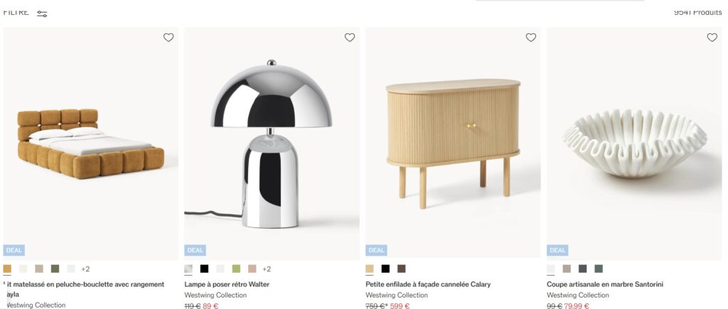 Westwingon vous en parle souvent, c’est l’un des concurrents qui monte en puissance de nombreuses grandes marques d’ameublement et de décoration en France. Avec ses produits premium voire haut de gamme, de qualité, qui suivent les tendances de décoration d’intérieur (ou même les lancent chez nous), Westwing devient un incontournable sur le marché da l’aménagement de la maison et de l’appartement. Découvrez d’ailleurs notre avis après plusieurs commandes sur Westwing.fr.