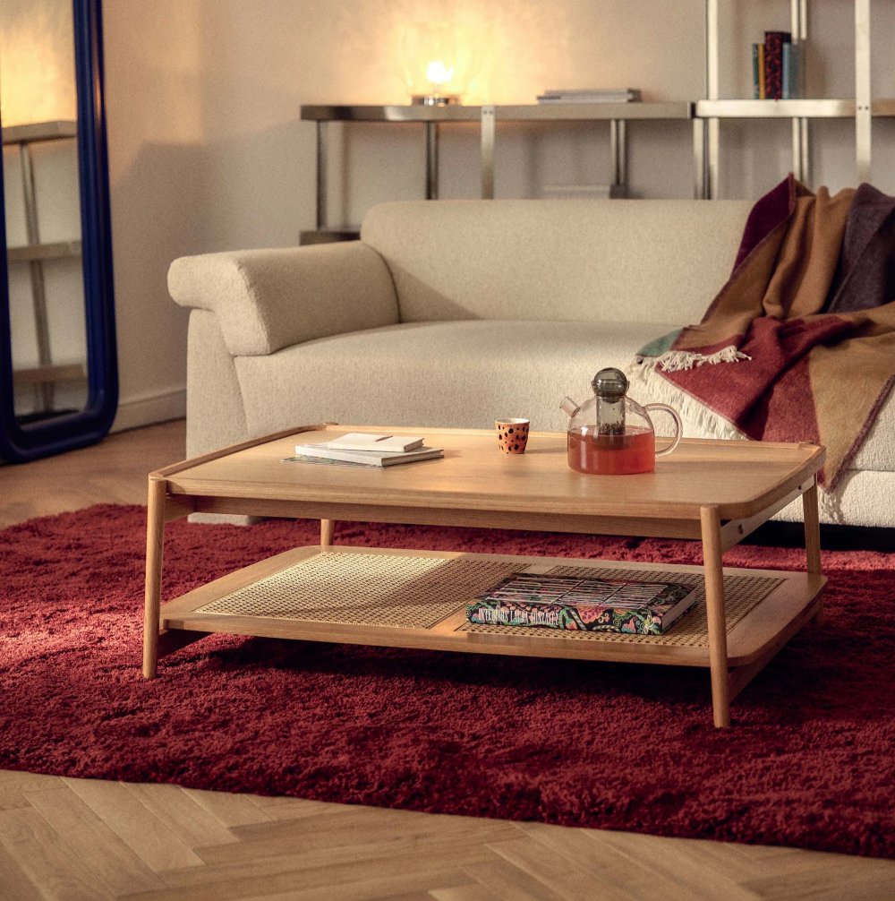 Une table basse aux lignes douces qui peut s’intégrer dans différents intérieurs, du contemporain au scandinave en passant par le Japandi. Modèle Alyasa AM.PM. Source photo : La Redoute