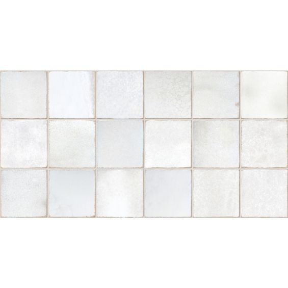 Le blanc (pur, cassé ou légèrement ivoire) s’adapte à tous les styles, du plus minimaliste au plus bohème. En brillant, il accentue l’effet miroitant typique du zellige ; en mat, il donne une touche plus douce et poudrée. Son aspect légèrement irrégulier, lié au travail artisanal, en fait un matériau vivant, loin des carreaux uniformes industriels.