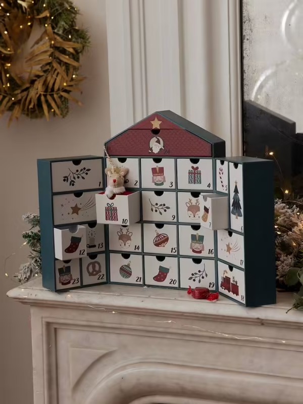 Réutilisables, les calendriers de l’Avent en tissu ou en carton prennent bien des formes : maison, sapin, renne… Et peuvent donc être ressortis chaque année, en renouvelant les surprises (petits jouets, chocolats, peluches, activités à partager ensemble…).