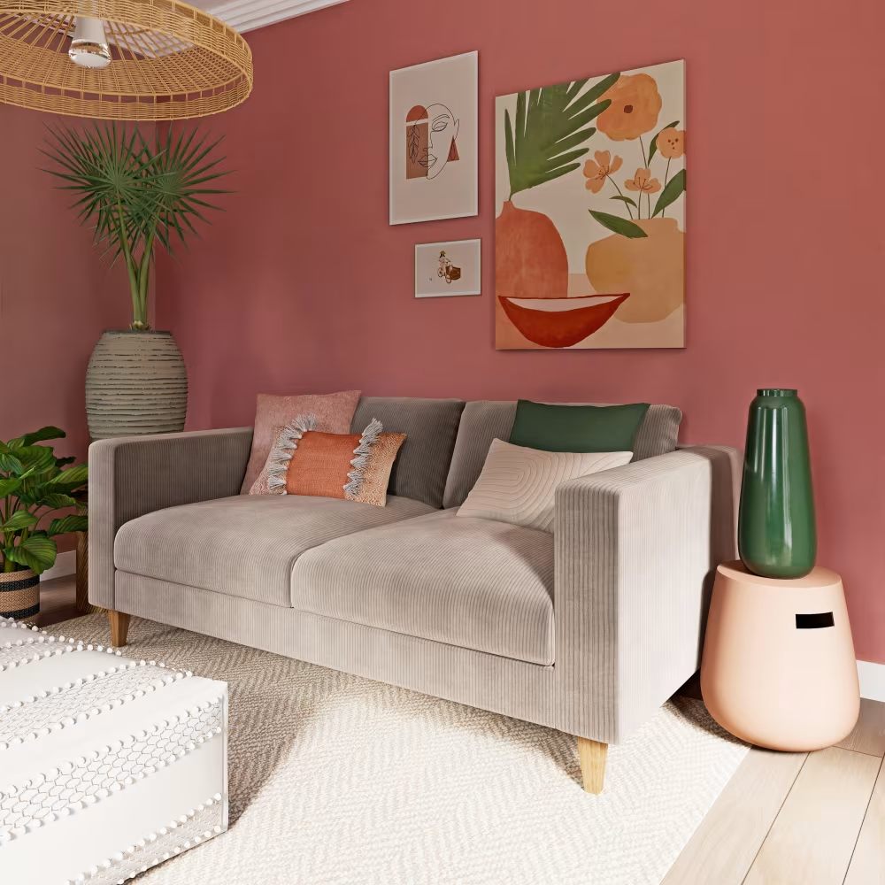 3 à 4 places assises, un angle pour étendre ses jambes, ce canapé assure confort et style dans le salon grâce à son design plutôt intemporel inspiré du scandinave. Décliné en tissu gris clair ou anthracite, bleu, bouclette blanc ou même en velours vert, Brooke est un canapé présent depuis près de 10 ans dans le catalogue Maisons du Monde et qui séduit par sa praticité et son confort. Son système à roulettes permet de la déplier aisément pour former un couchage d’appoint.