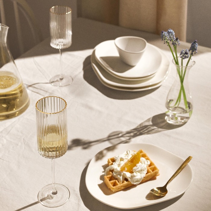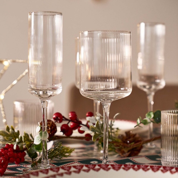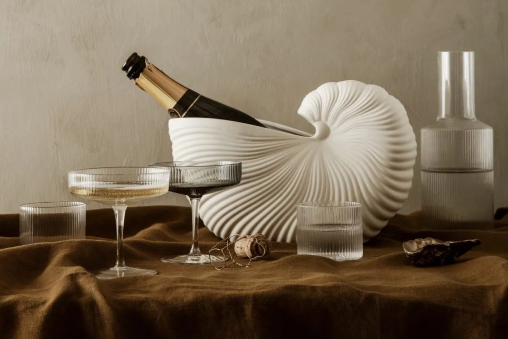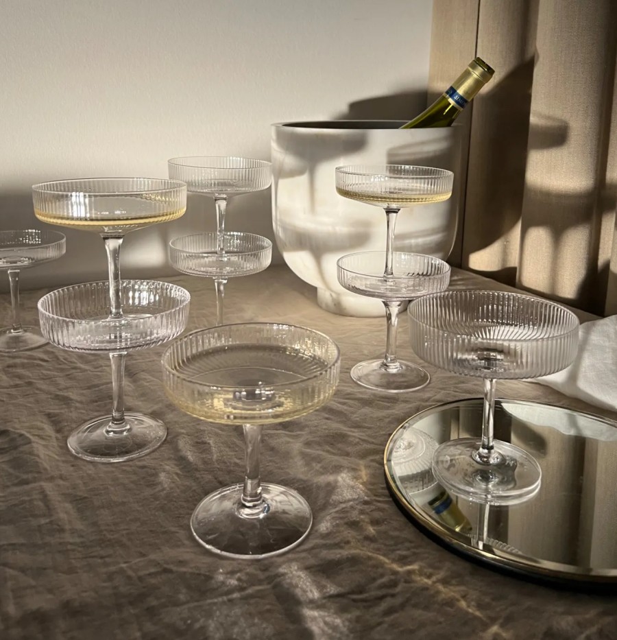 Coupes à champagne Ripple en verre strié, chic et élégantes ! Ferm Living. Source photo : Smallable