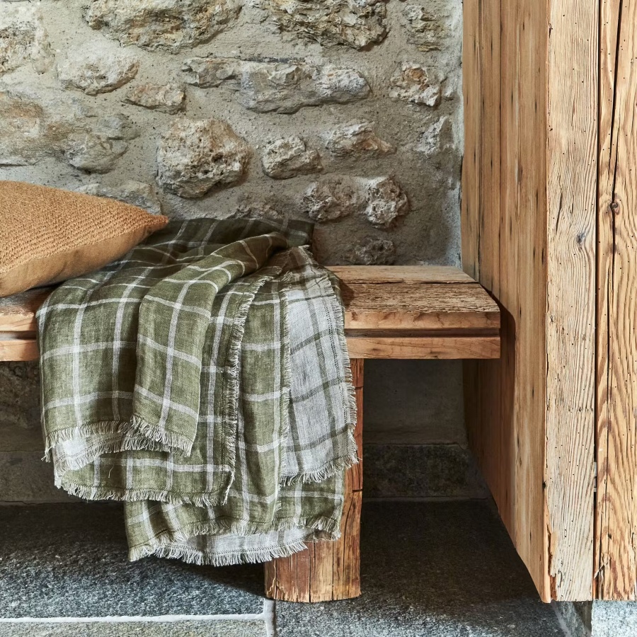 Plaid à carreaux en lin lavé 130x170cm – vert Valbel