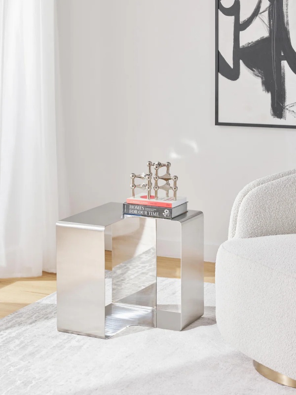 Longtemps cantonné aux détails, le métal s’impose désormais comme un véritable élément décoratif. En version brossée ou polie, dans des nuances argentées froides, il structure les formes et capte la lumière avec subtilité. Chrome, inox ou finitions miroir trouvent leur place dans des intérieurs contemporains, souvent associés au verre ou à des matériaux translucides. Le résultat est à la fois moderne et élégant, avec une touche presque futuriste, sans sacrifier le confort du quotidien.