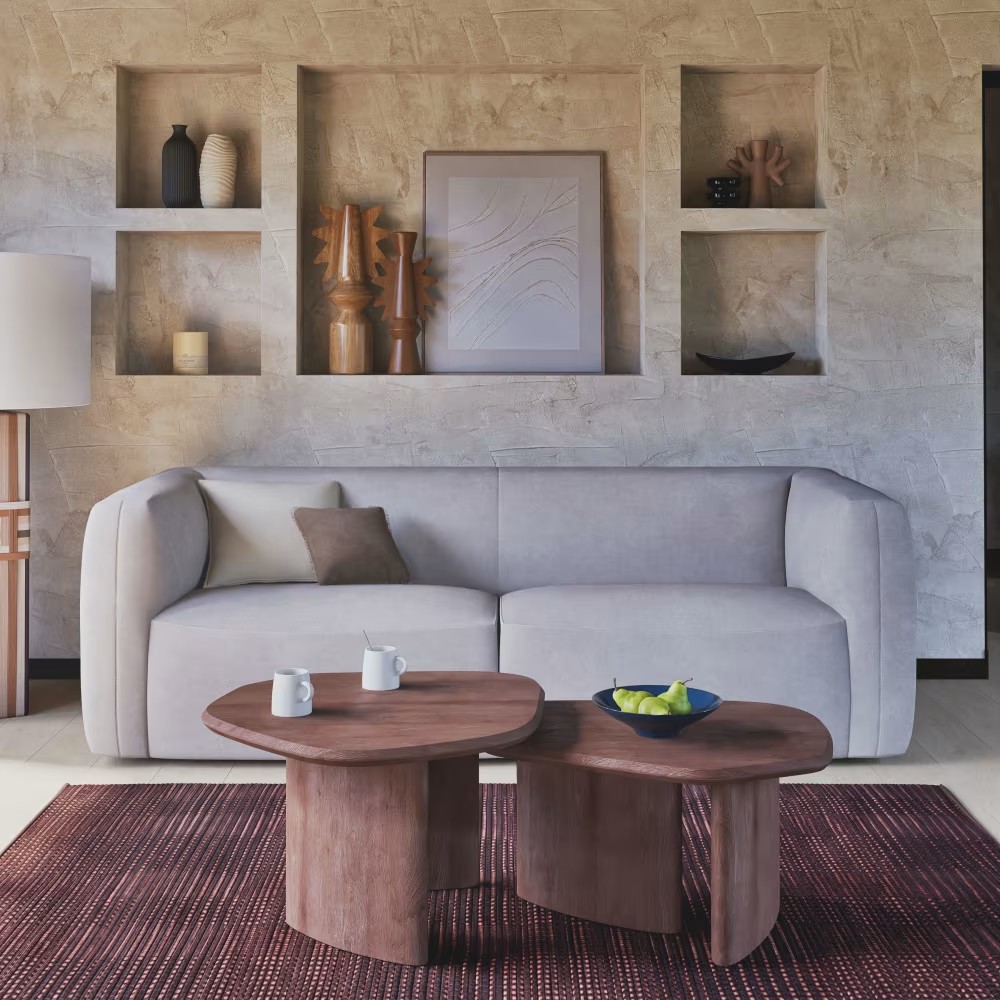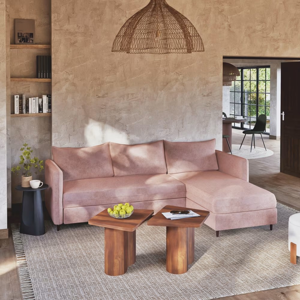 Sur les meubles, on remarque dans les nouveautés 2026 que le velours est très présent : l’incontournable canapé Lilo se pare d’un velours beige / rose, tandis que de nouveaux modèles de canapés optent aussi pour le tissu velours en différents coloris.