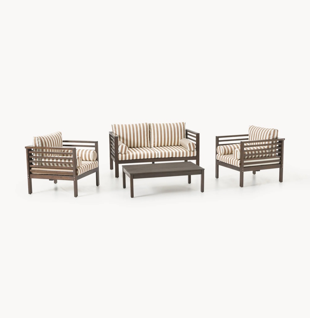 On notera aussi la revisite de la gamme de salons de jardin Bo avec un bois d’acacia plus foncé et un tissu rayé beige / blanc.