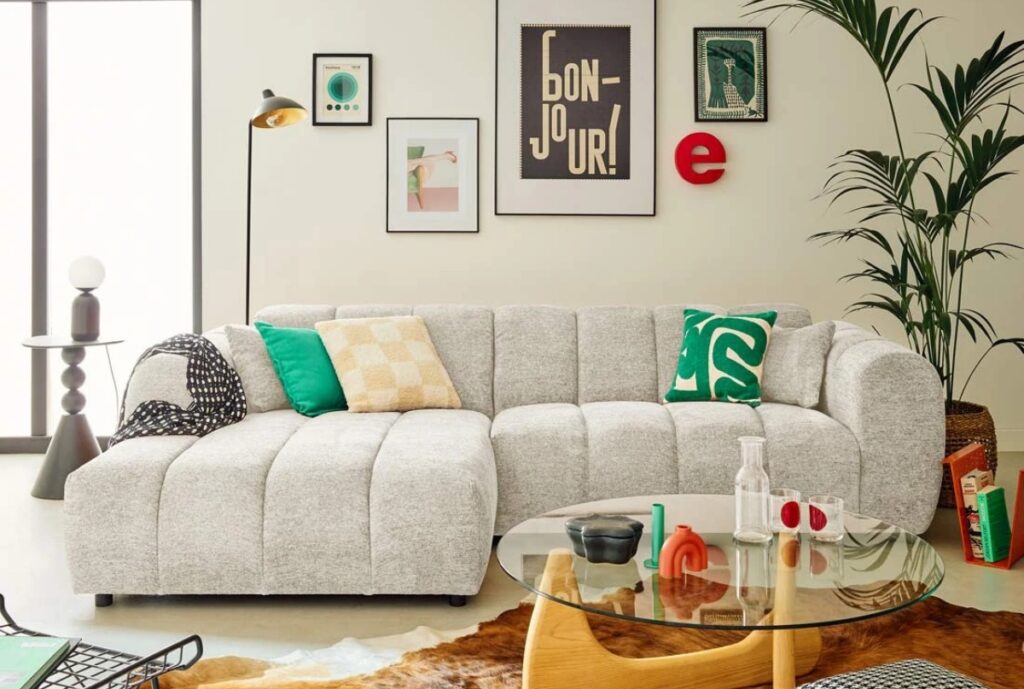 Le canapé droit reste le choix idéal pour les petits salons ou les appartements urbains. Compact mais accueillant, il apporte immédiatement du caractère sans encombrer la pièce. La version d’angle rencontre un succès croissant. Elle structure l’espace et crée naturellement une zone détente, parfaite pour les pièces ouvertes où le canapé remplace presque un mur visuel.