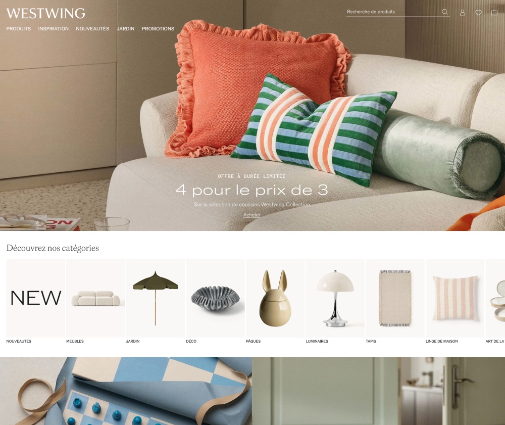 Incontournable dans l’univers du meuble et de la décoration, le site allemand Westwing a su se faire sa place ces dernières années comme un incontournable lors d’une recherche de meubles, déco, luminaires, linge de maison, etc. le tout orienté design, scandinave ou autre. On est sur une alternative qui reste relativement différente d’alinea sur le style déco, mais cela permet d’ouvrir des horizons 🙂