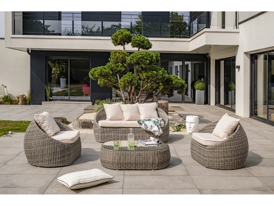 Salon de Jardin 5 Places en Résine Tressée « Isa » 160cm Gris – 10 %, DCB Garden
